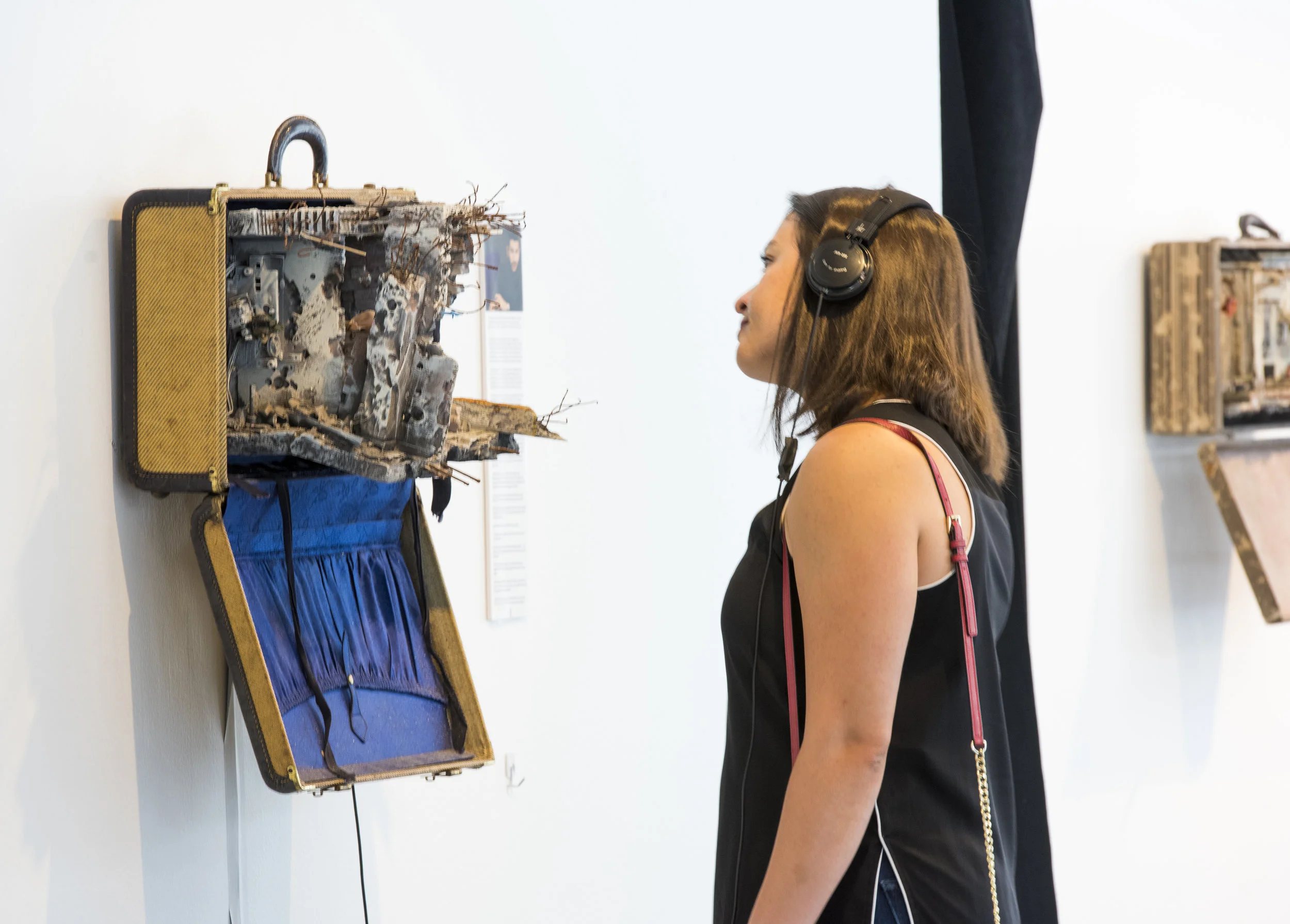 Click the boxes to view each suitcase and hear its accompanying audio story.